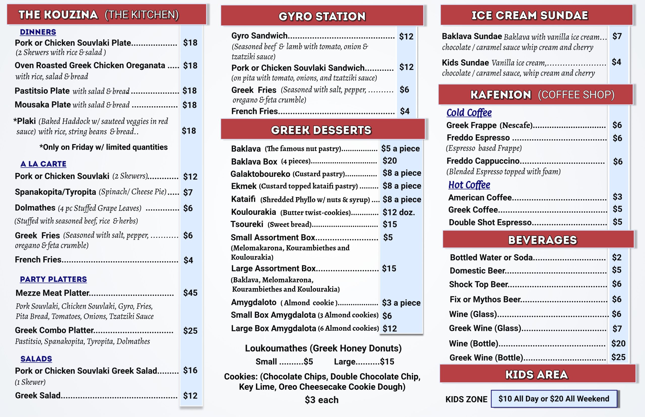 Enjoy Traditional Greek cuisine | Home Made Pastries | Beer and Wine | Live Greek Music and Dancing | Games and Inflatables for Children | Raffle | Specialty Boutiques | Guided Church Tours